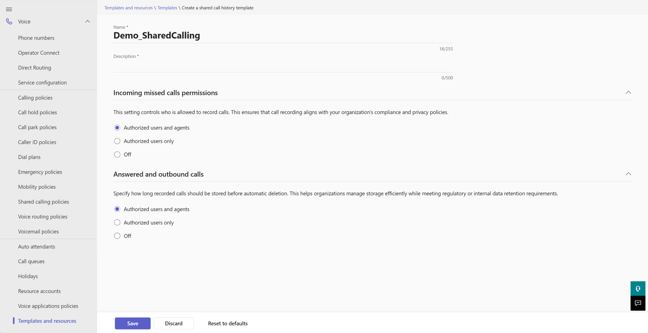 Access is controlled by Shared Call Queue History Templates, configurable via PowerShell or via the new sub-menu under the Voice tab in Teams Admin Center: templates and resources. These templates can be used to define :